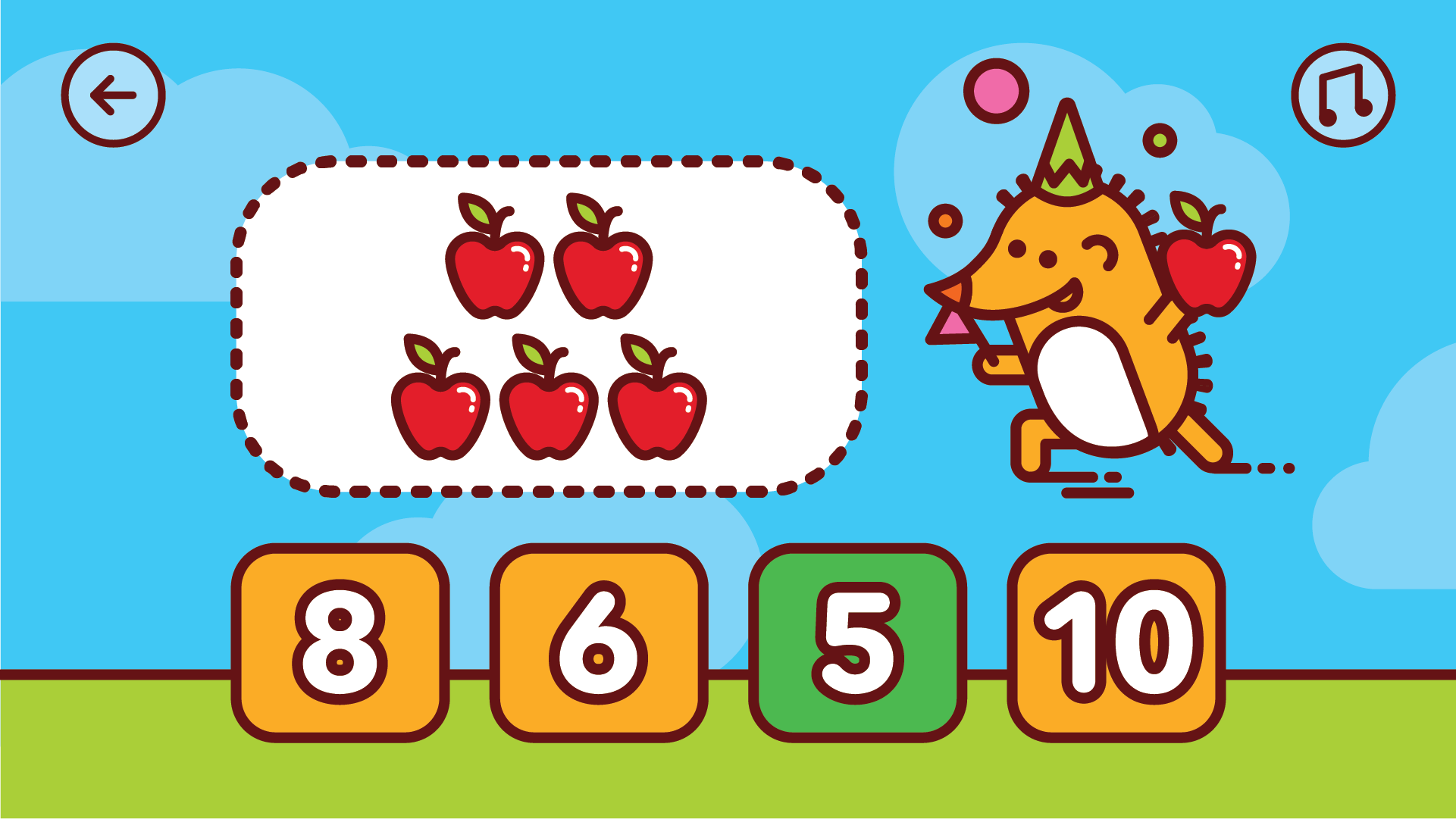 Salam, mən kirpiyəm! Mənim ilə oynamaq daha əyləncəlidir. Mən sənə rəqəmləri öyrənməkdə kömək edəcəm.